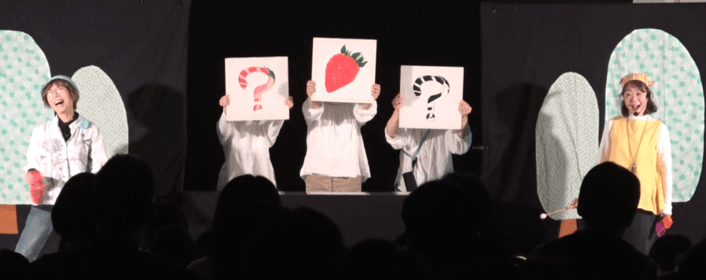 千葉県柏市をホームに活動する、主に親子向けのシアター。人形劇、紙芝居、絵本などいろいろな媒体による、照明・音楽を使った楽しいライブ型の公演です。パンチのある手遊び、音楽遊びも特徴。 設立は1986年6月。 2017年、内閣府春の叙勲で「緑綬褒章」受賞。